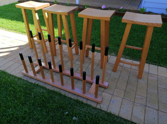 Bar stools and boot rack in Victorian Ash, oil finish on stools and marine varnish on boot rack.